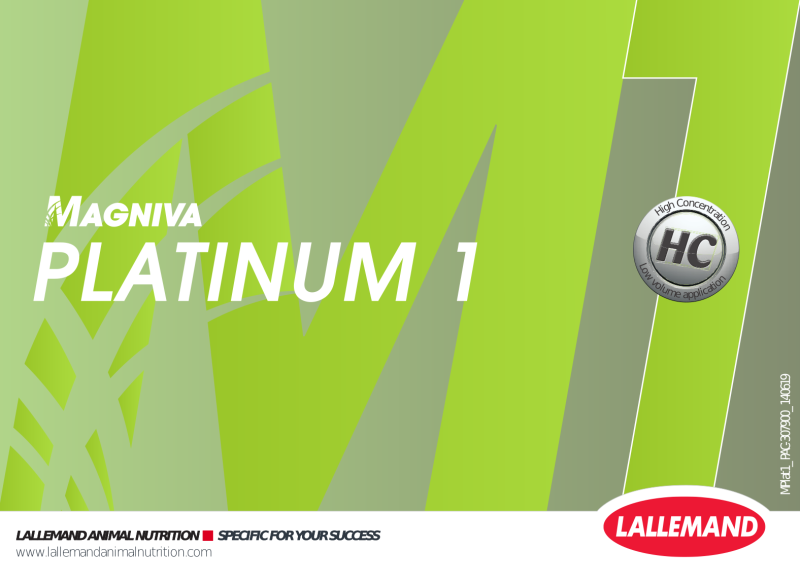 Popis: Kombinace nově patentovaného kmene bakterií Lactobacillus hilgardii CNCM I-4785 s osvědčeným Lactobacillus buchneri NCIMB 40788 v přípravku MAGNIVA Platinum 1 nastavuje nový standard pro fermentaci a aerobní stabilitu s využitím technologie HC (vysoké koncentrace).