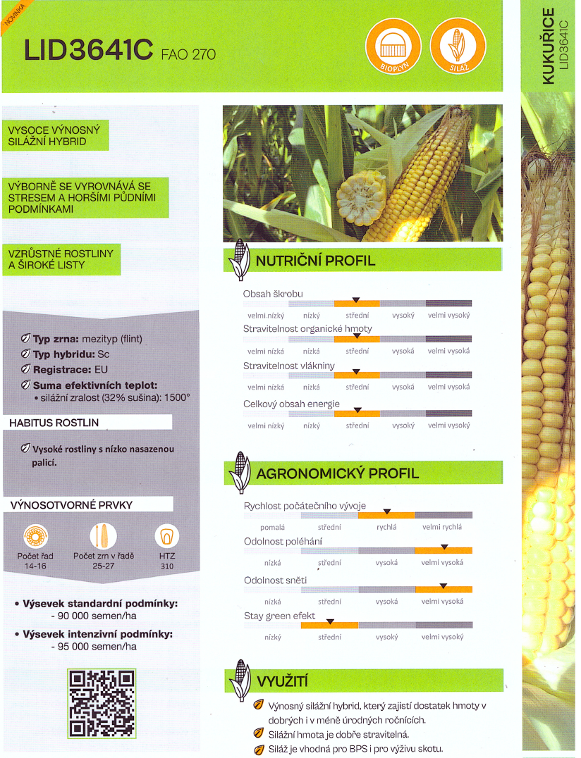 Z portfolia firmy LIDEA Czechia vám chceme představit nový perspektivní hybrid LID3641C. Ten by měl postupně nahradit vysoce vzrůstný hybrid ES Skytower, který při srovnatelném výnosu hmoty již pokulhává v obsahu škrobu.
